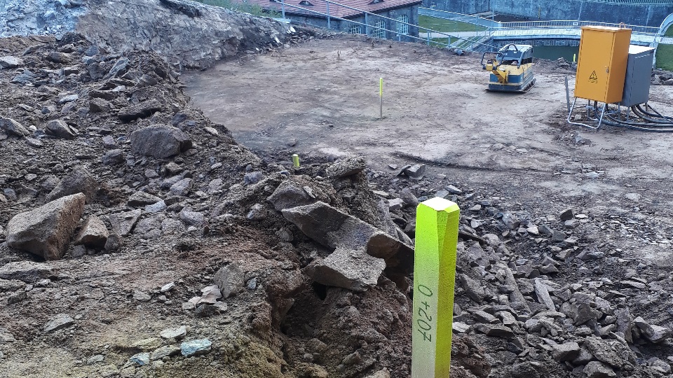 Das Bild der Woche ist bei einer Grobabsteckung für die Baugrube entstanden.