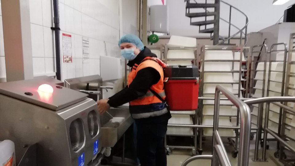Hoch über den Dächern von Dresden.....Kontrollmessung auf dem Schwimmsportkomplex an der Freiberger Straße.