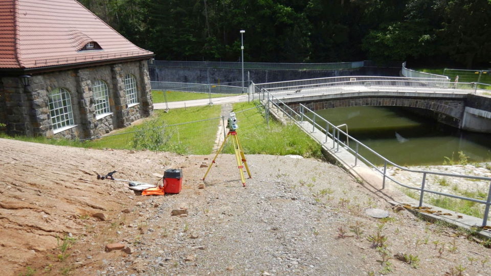 Eine ziemlich "schräge" Angelegenheit....Bauvermessung an der Talsperre Malter.